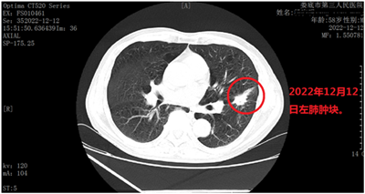 12月12日患者在娄底市第三人民医院肿瘤科行肺穿刺活检,确诊为左肺低分化腺癌(见下图),建议手术切除,患者由于个人原因拒绝手术治疗,要求保守治疗。